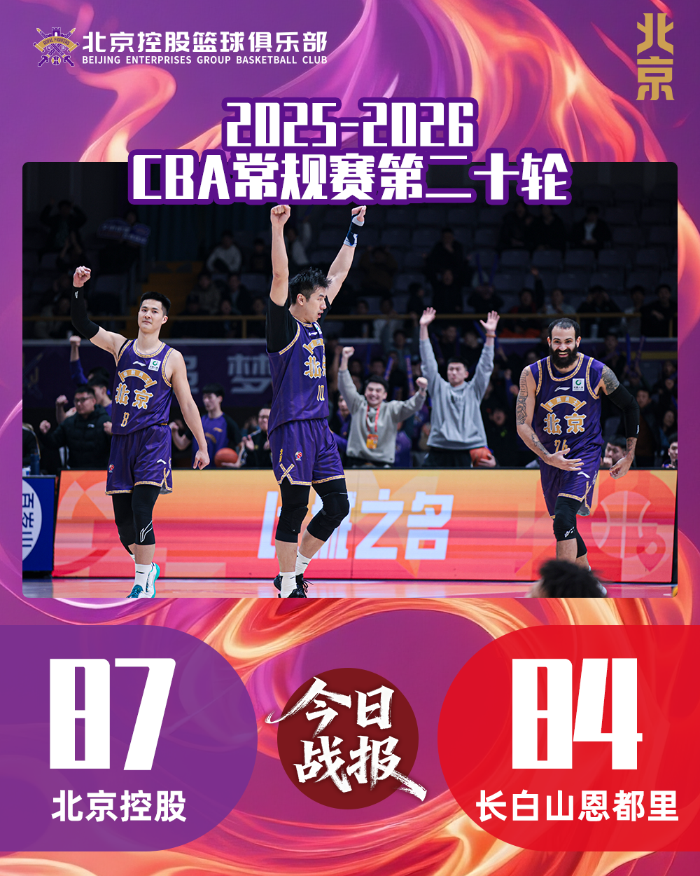 1月26日,北控男篮迎来与长白山恩都里的二番战。赛前两队同为8胜11负,本场“卡位战”至关重要,沈梓捷火线复出,与邹雨宸完美搭档,内线双塔在攻防两端为球队做出卓越贡献。经过一场跌宕起伏的较量,北控男篮涉险过关,87:84战胜对手。